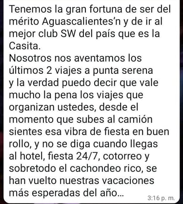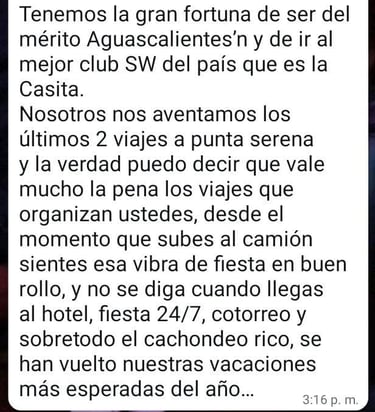 Viaja sin preocupaciones con nuestro autobús saliendo de Aguascalientes, o llega por tu cuenta y nos vemos en el paraíso.
